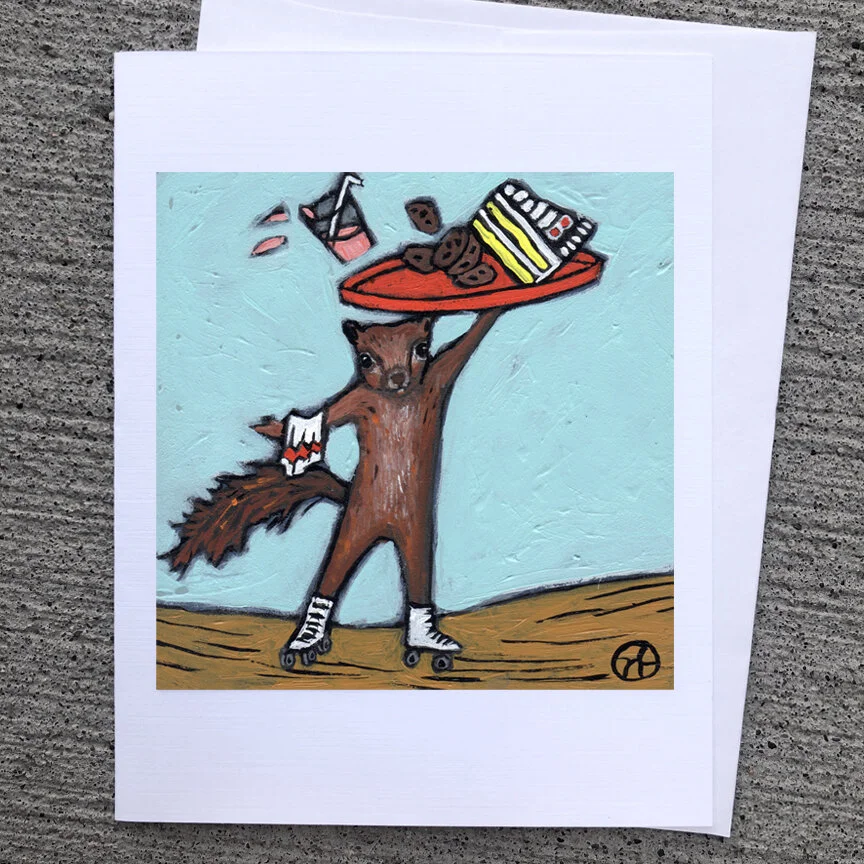 Squirrel greeting card, squirrel notecard, and Cake card, blank greeting card, blank card, whimsical card, holiday card, birthday card, valentine card