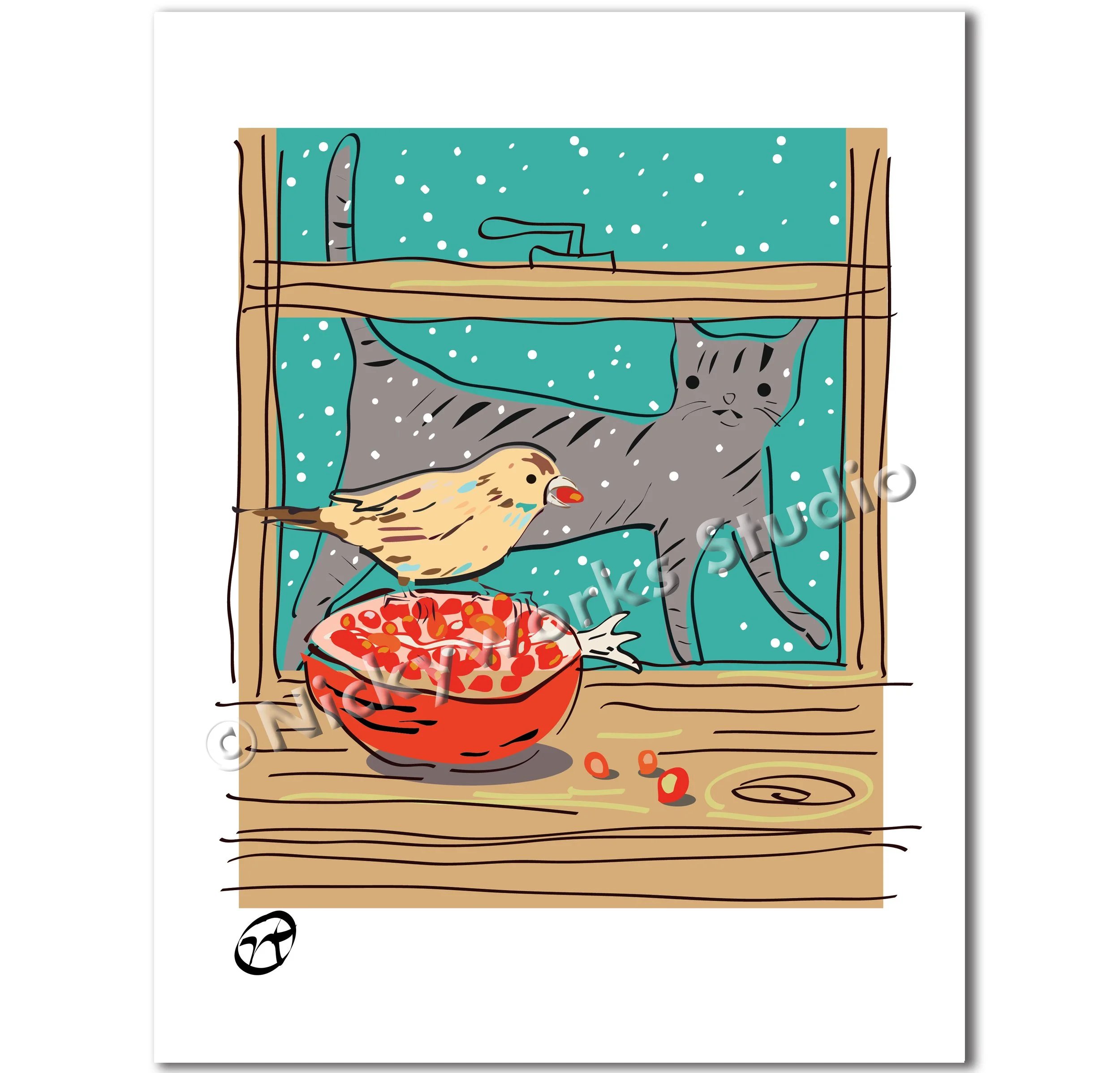 Cat and Sparrow Drawing print