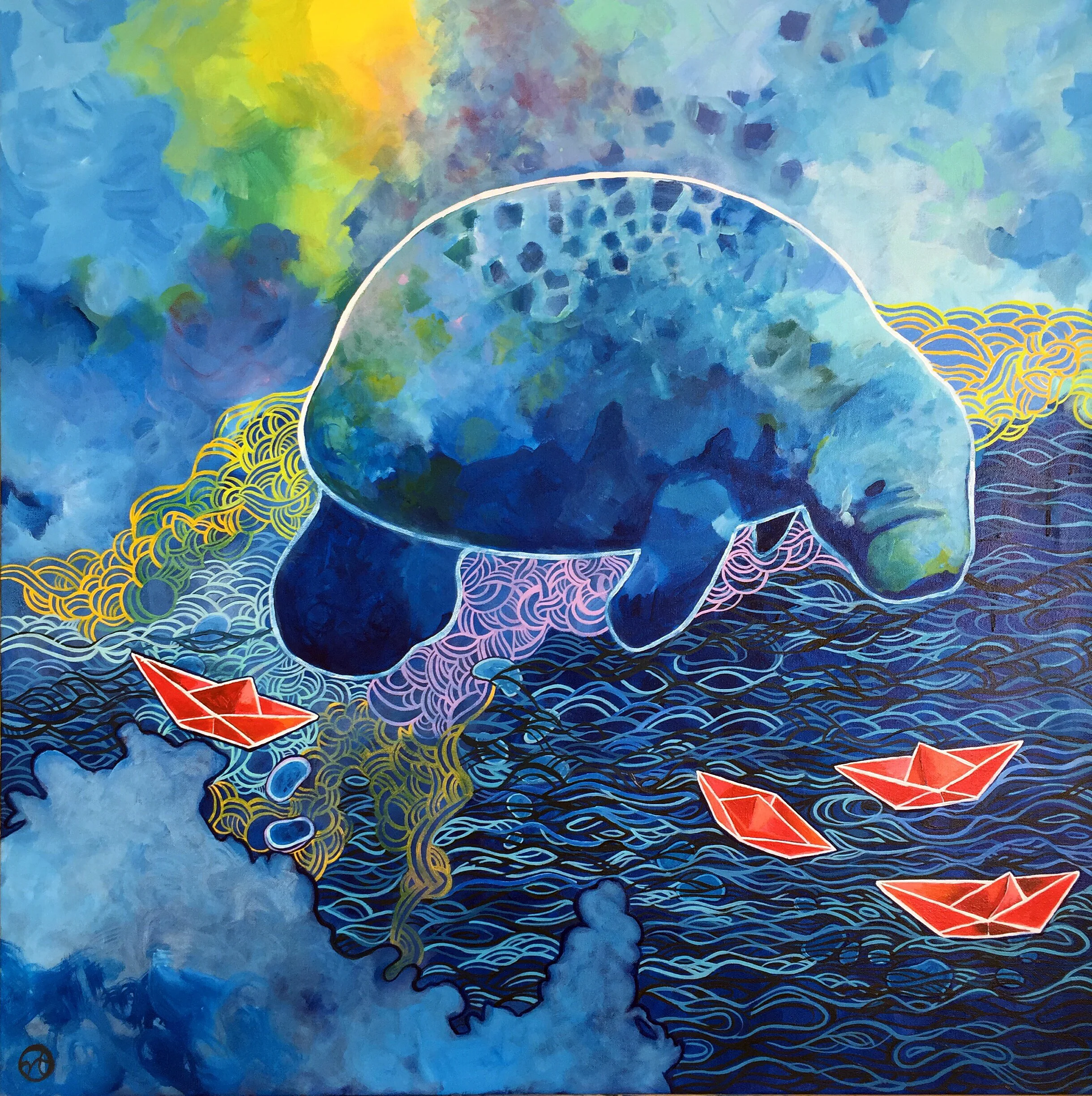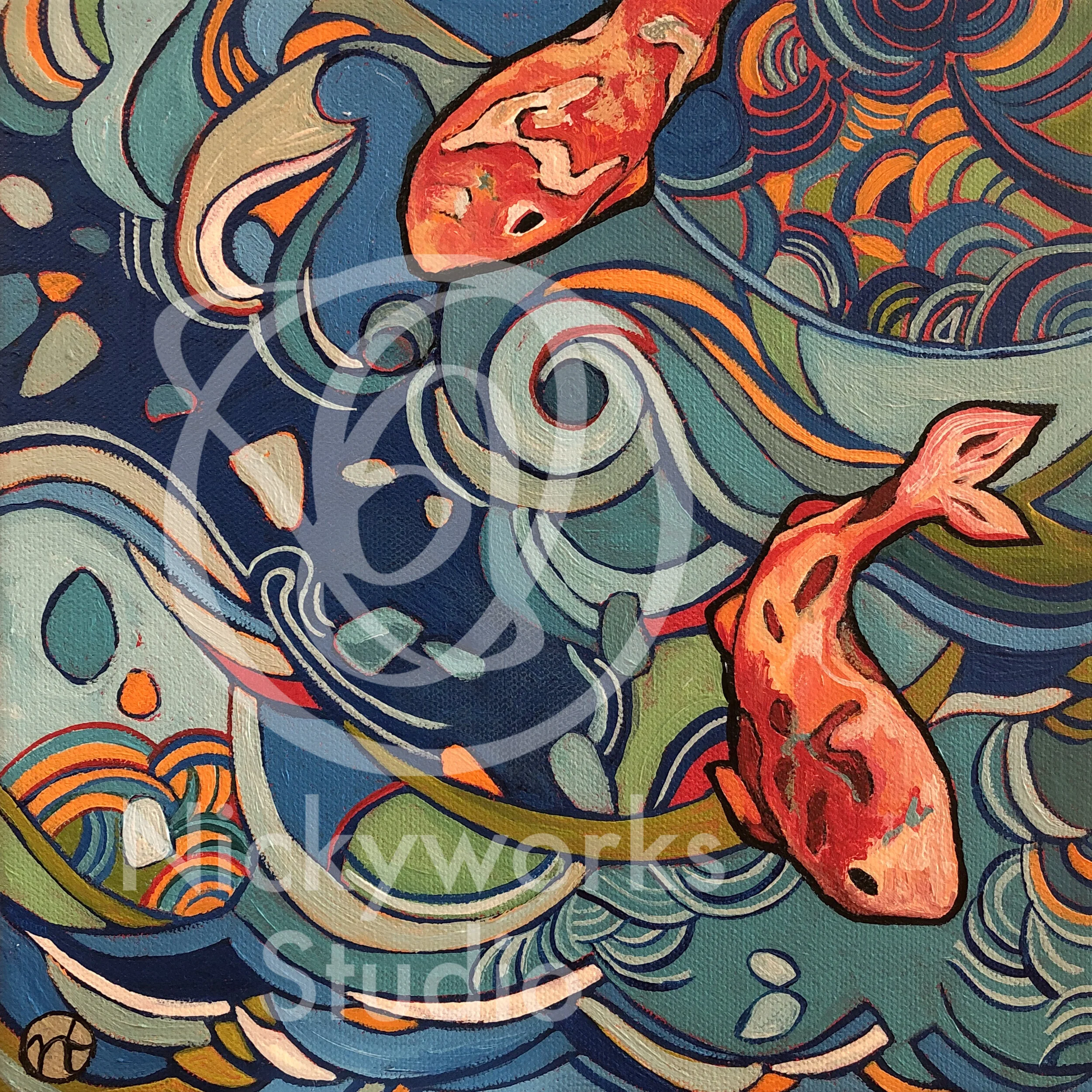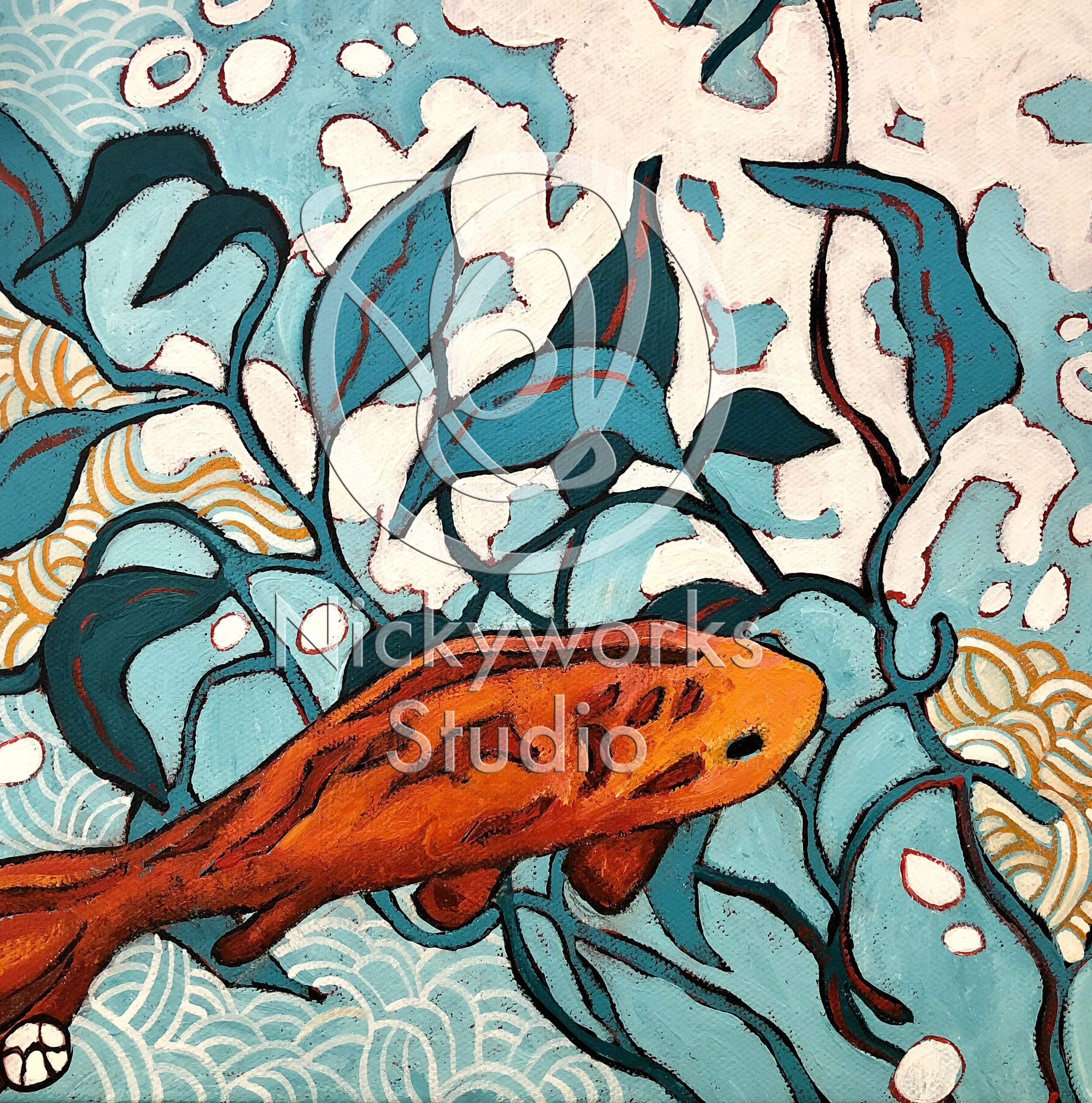 When I started painting professionally (making art with the intention of selling it), I painted fish. I painted fish and other sea creatures almost exclusively. I even overheard people refer to me as the Fish Lady. I thought it was funny, but also true. I really don’t know if there is some hidden meaning for my desire to paint so many creatures of water. I know that I love watching them swim, I love the shimmer of their bodies and the ripple of water as they swim.
